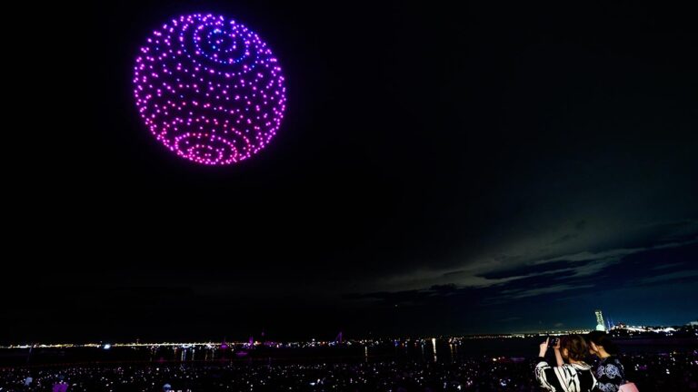 ドローンショー・ジャパン、関西空港をバックに500機の壮大なドローンショー実施。夏の終わりの夜空を彩る