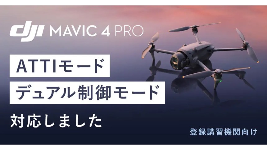 株式会社システムファイブは2026年1月28日、DJIの小型ドローン「DJI Mavic 4 Pro」向けに、ATTIモードとデュアルコントロール(2台送信機)を追加する特別ファームウェア「DJI Fly (For Mavic 4 Pro ATTI & DUALコントロールモード)」の提供を開始すると発表した。提供対象は登録講習機関および指定試験機関に限られる。