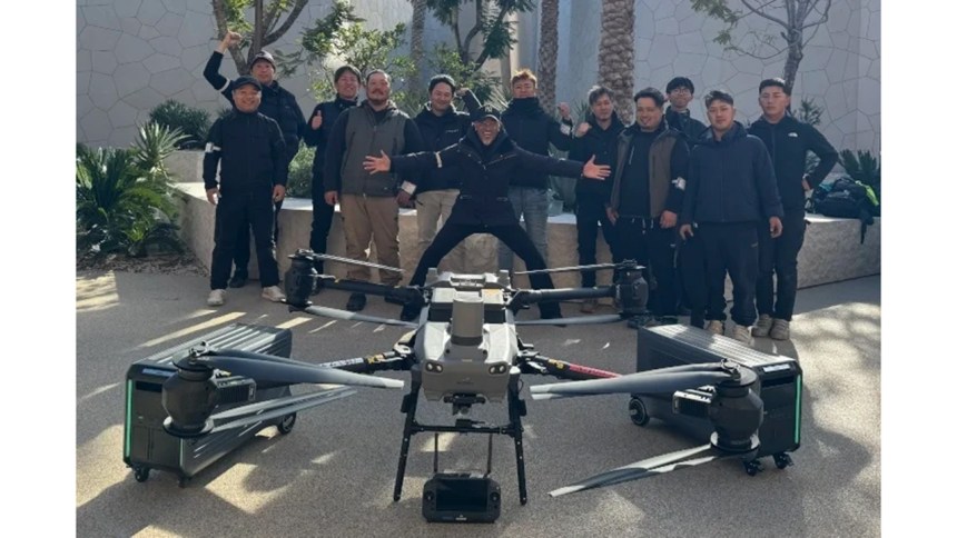 EUREKA株式会社は2026年2月3日、中東大手国家パビリオンに設置された約250枚の太陽光パネルを、大型ウィンチ付きドローンで吊り上げて空輸し回収したと発表した。1枚あたり約23kgのパネルを、クレーンが届くエリアまで直接運ぶ方式で、足場の組み付けを不要とし、2日間で回収を完了したという。