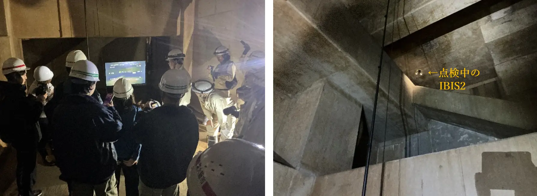 新井組によると、IBIS2が狭隘な空間を有する構造体の奥まで進入し、内部構造や施設の状態を静止画・動画で捉えたという。点検員が危険な環境に立ち入る場面を減らし、人身事故リスクの低減につながる点を成果として挙げた。
